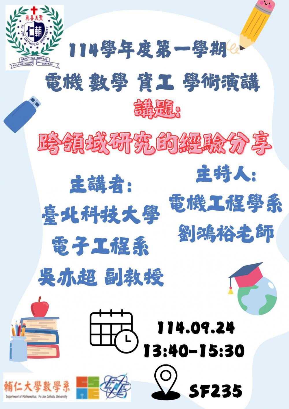 2025/09/24 電機、資工、數學聯合學術演講 / 北科大吳亦超副教授
