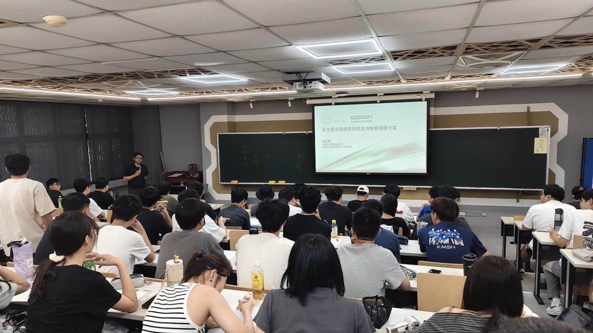 這次很榮幸能邀請蔡孟燦學長與我們分享他在生醫光電領域的研究與創業經驗。學長首先提到光電的三大應用方向:醫療、感測器以及影像處理。他以感測器為例,介紹了紅外線探測技術及各種成像設備,並比較不同工具的優缺點。他特別強調,成像技術並不存在「萬用解方」,必須根據檢測物大小與應用需求,在解析度與穿透深度之間取得平衡。