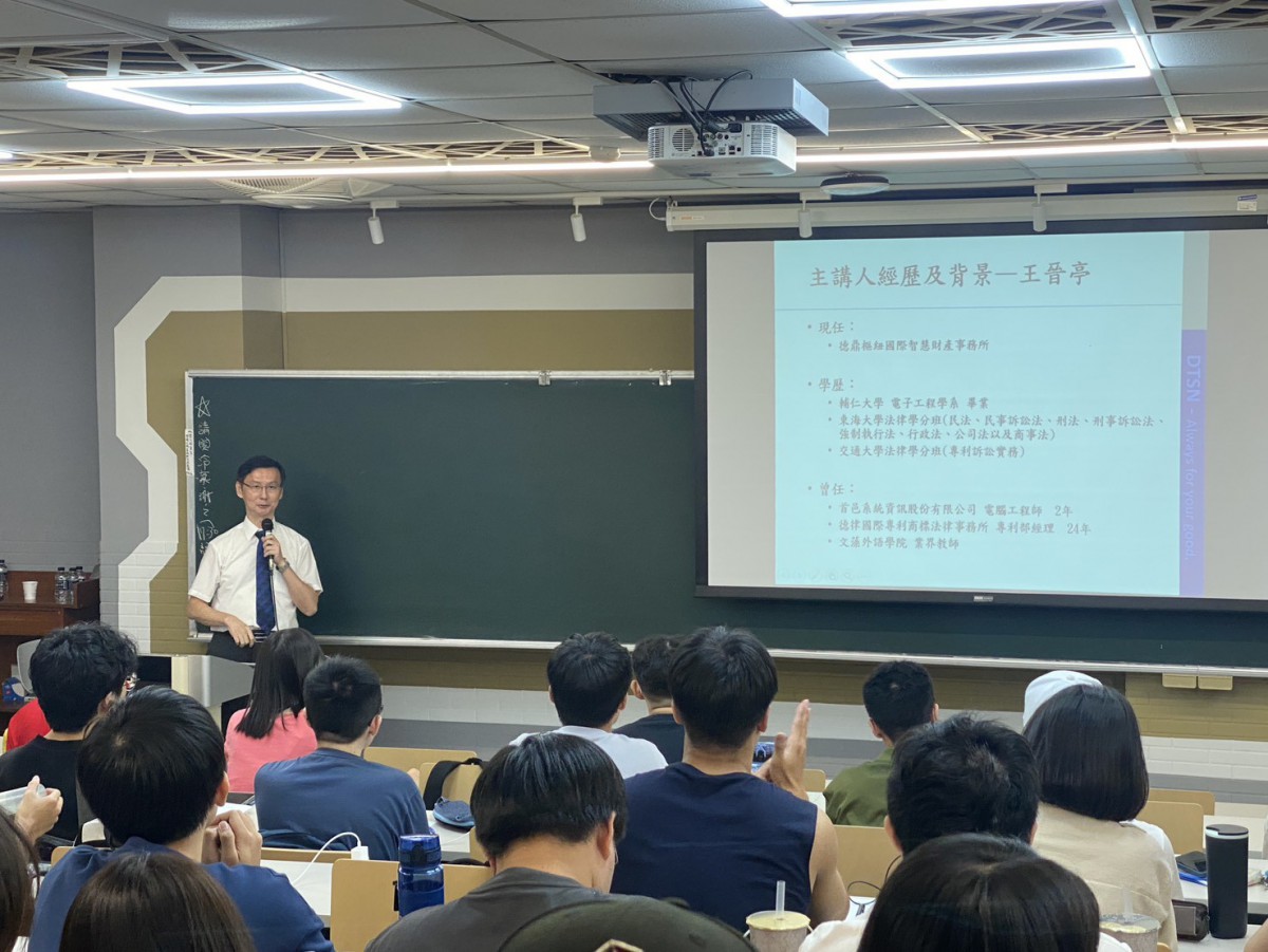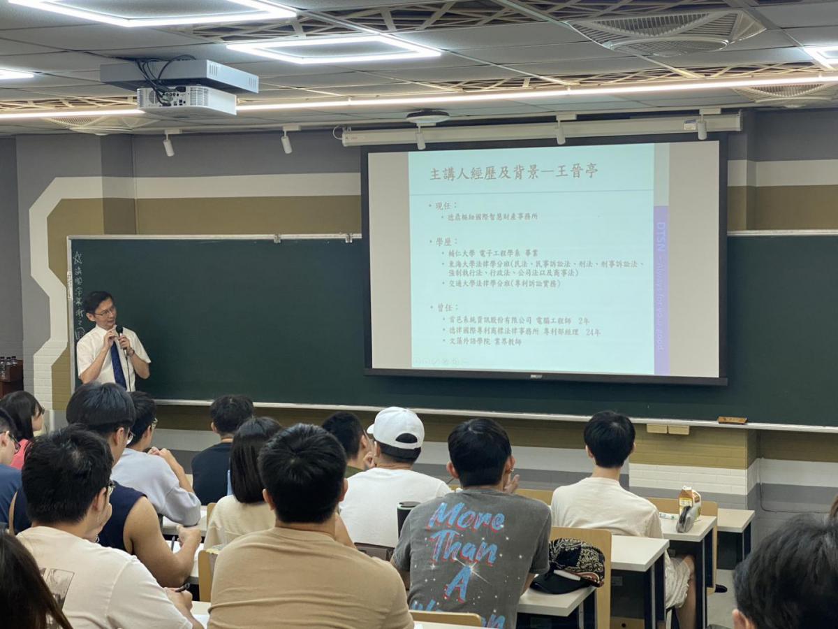 這次很榮幸能邀請王晉亭學長與我們分享他在智慧財產權業界的經歷與心得。學長首先提到智慧財產權的分類,包括專利、商標、著作權與營業秘密,並簡單介紹了這四項。例如,專利是指利用自然法則所產生的技術創作;商標則是具有識別性的標誌,可能是文字、圖形或記號等。
