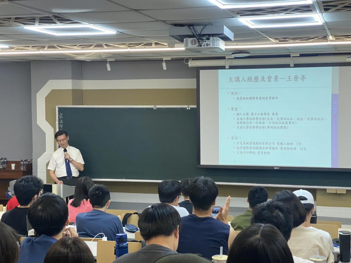 最後,學長分享了專利領域的工作內容,包括專利搜尋、專利說明書撰寫、答辯與舉發理由的撰擬、專利核准性與侵權判斷、案件接洽以及專利訴訟等。此外,學長也談到專利工程師應具備的素養,如倫理道德、溝通能力、專業知識、基礎圖學與物理、文學素養、法律常識與法律敏感度,甚至還需要具備一些藝術氣息、會計能力及廣泛的生活常識。而最重要的,是要有正確的心態,因為學長認為「心態決定一切」,並且要有投入長時間學習與實踐的心理準備。