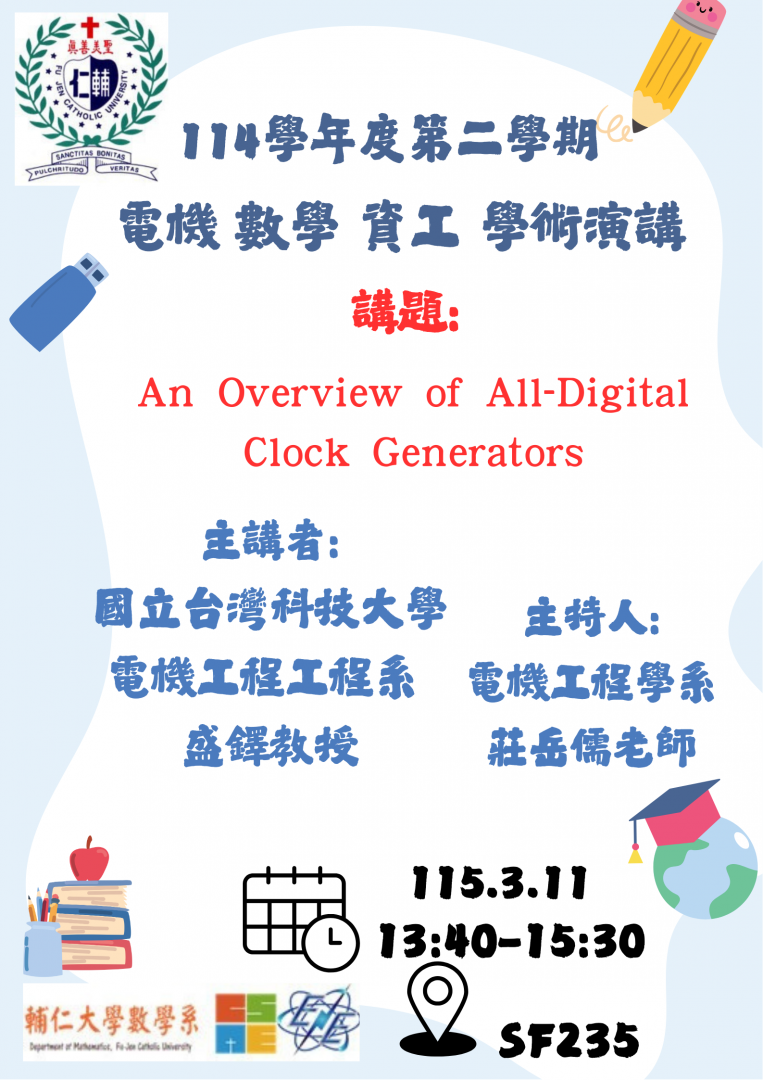 2026/03/11 電機、資工、數學聯合學術演講 國立臺灣科技大學電機工程系 盛鐸教授