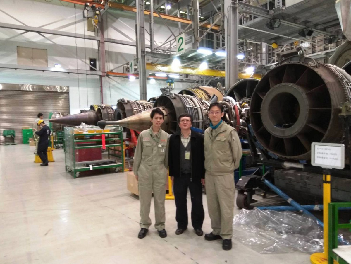 為了解本系學生至長榮航太科技的實習情況,系主任2月21日至該公司進行實習訪視。長榮航太科技公司除了提供長榮航空機隊及立榮航空之維修服務外,亦持續擴大代理其他航空公司之各項維修業務,並與美國波音合作負責改裝的特殊用途大型運輸機。本次學生實習部門是引擎維修部門,目前透過與美國奇異(GE)公司之合作,進一步提昇整體飛機維修相關技術及能力,未來該部門將為GE發動機在海外主要維修基地。本次訪視先和江課長會談以了解李同學的工作內容並觀賞長榮航太的簡介影片,聽取長榮航太發展的歷程及未來的願景。接著參觀引擎維修及測試現場,能近距離觀察各類飛機發動機的結構是相當難得的經驗,對維修飛機發動機的過程留下深刻的印象,相信學生來此實習是相當好的學習機會。
